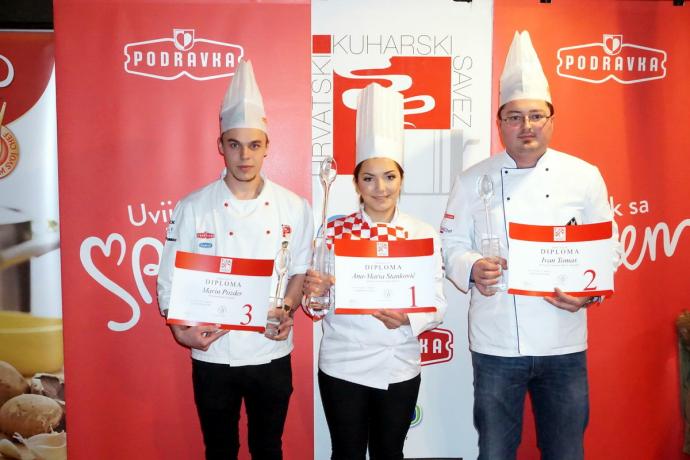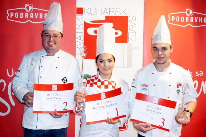 Ana-Maria Stanković obranila je titulu te uvjerljivo osvojila prvo mjesto s pomoćnikom Markom Kovačevićem predstavljajući Srednju strukovnu školu Vinkovci. Drugo mjesto pripalo je Ivanu Tomasu iz varaždinskog restorana “Fontana Crnković”, dok je treće mjesto osvojila mlada nada još jednog varaždinskog restorana Bedem. Pobjednici su primili trofeje – Kristalne kuhače, kao i vrijedne poklon-pakete sponzora Podravke i Dick. Nagrade su im uručili predsjednik i potpredsjednik Hrvatskog kuahrskog saveza Damir Crleni i Dražen Đurišević uz pomoć Miroslava Dolovčaka, predsjednika sekcije sudaca HKS-a.