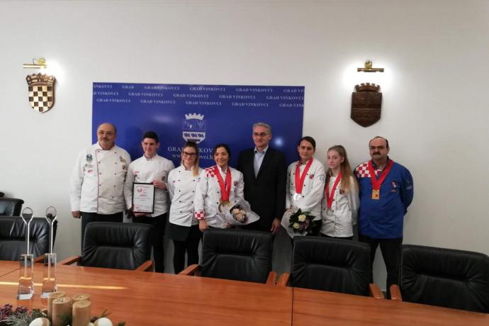 Članovi udruge kuhara i slastičara VSŽ prisustvovali su i prijamu kod gradonačelnika grada Vinkovaca, gdje ih je ugostio g. G. Šokičić, zamjenik gradonačelnika g. I. Bosančića, te im uputio svoje čestitke za ostvarene rezultate na manifestaciji Dani hrvatskog kulinarstva. Prijamu su prisustvovali predsjednik Udruge kuhara VSŽ, g. Jozo Gale, Ana-Maria Stanković koja se okitila titulom Državne prvakinje u kuharstvu, Marija Bošnjak koja je osvojila treće mjesto u natjecanju za Državnog prvaka u slastičarstvu te učenici Srednje strukovne škole Vinkovci na čelu s mentorom Ivicom Ljubekom koji su također ostvarili zapažene rezultate na manifestaciji.