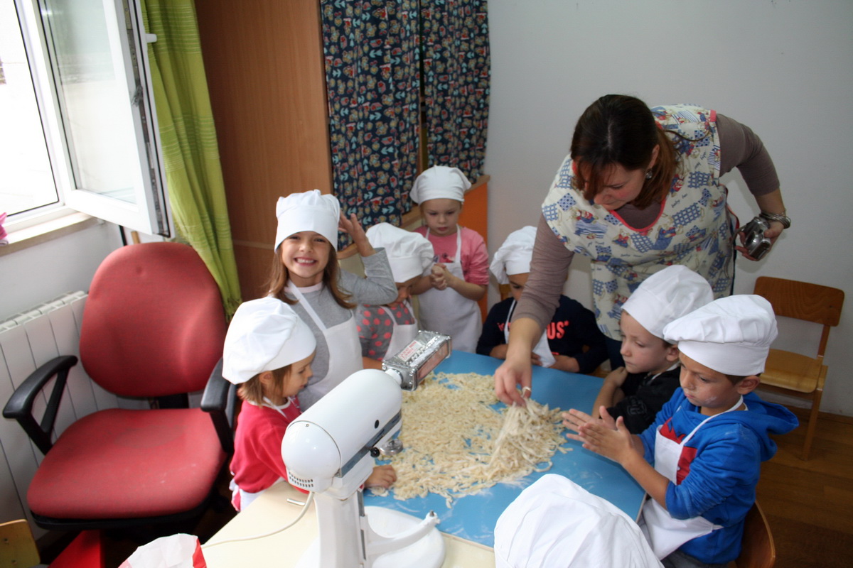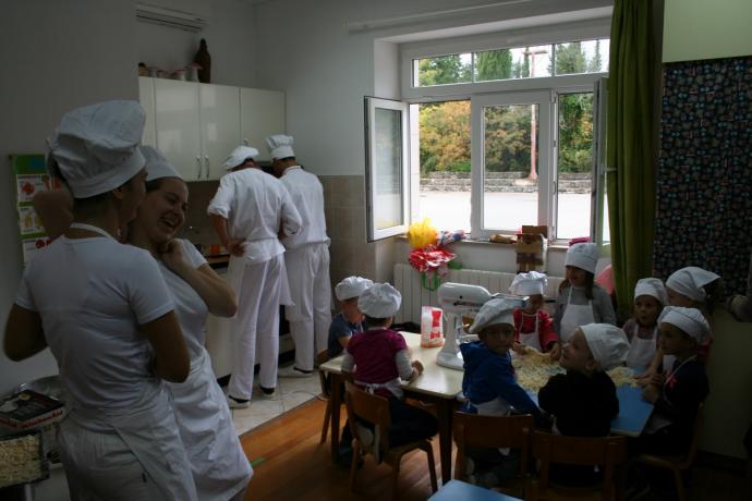 Korčula: Povodom svjetskog dana kuhara, a ujedno i dana jabuka, učenici kuhari Srednje škole Petra Šegedina Korčula: Lucija Stipković, Lucija Bačić, Frane Vlašić i Ivo Andričević kroz prigodnu radionicu prezentirali su zdravu prehranu u dječjem vrtiću Žrnovo. Djeca Žrnovskog vrtića svojim su ručicama mijesili i oblikovali tijesto od kojeg su, zajedno sa učenicima kuharima, izrađivali rezance. Kuhari su tjesteninu skuhali, povezali s umacima a djeca su je s guštom pojela. Nakon jela svi su se zasladili kolačem od jabuka kojeg su također zajedno pripremili. Da radionica protekne uredno i sigurno koordinirali su Anita Radovanović ( teta vrtića) i Ante Skokandić (str. Učitelj kuharstva). Na kraju radionice djeci su podijeljene kuhače kao nagrada za uspješan rad, nakon čega su sva djeca izrazila želju da bi postali kuhari. Možda bolja budućnost Korčulanskog turizma leži baš u njima, no ipak ćemo za boljitak morati počekati još petnaestak godina – poručuju iz Korčule.