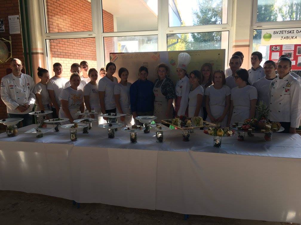 Varaždin: Kao i svake godine, u Gospodarskoj školi Varaždin se za međunarodni dan kuhara prezentirala profesija kao i zdravi način prehrane i pripremanja jela. Ove godine gosti škole bili su Dario Denac i Jasna Huzjak iz hotela Minerva u Varaždinskim Toplicama. Oduševljenim učenicima pokazivali su kako pripremiti kreativna jela od zdravih namirnica, pričali o radu i danu jednog kuhara i zaintrigirali ih i još više za zanimanje kuhar i slastičar. Malo smo razbili svakodnevicu u školi a opet smo naučili puno, šteta da nam svaki dan ne gostuju drugi kuhari – poručuju učenici za zanimanje kuhar i slastičar.