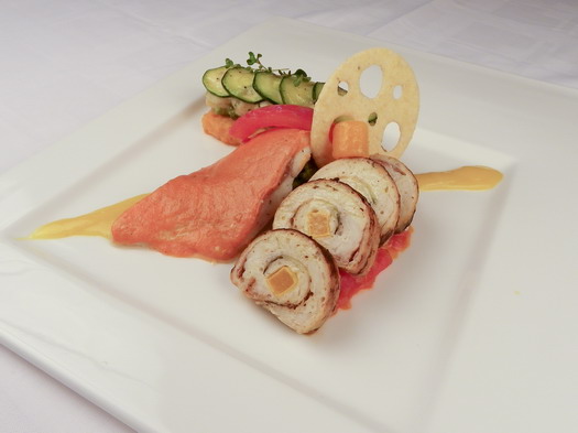 Od korjenastog povrća , ribljih kostiju i začina kuhati temeljac. Dio ribljih filea rezati na trake, prekriti smjesom od ribljeg mesa, jaja, vrhnja i obložiti listićima tikvice, poširati u ribljem temeljcu.