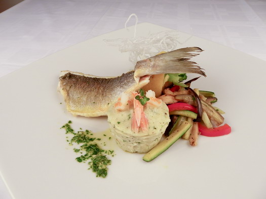 File orade začinimo, popržimo na tavi, te dogotovimo prije serviranja u pećnici. Drugi file sameljemo, zatim začinimo te miksamo sa ostalim začinima. Smjesa mora biti kompaktna kad sjedinimo sve začine. Paštetu kuhamo u toploj kupki, a zatim serviramo vrtlarskim povrćem. File orade lagano zalijemo trščanskim umakom. Sufle serviramo na salsi od svježih rajčica.