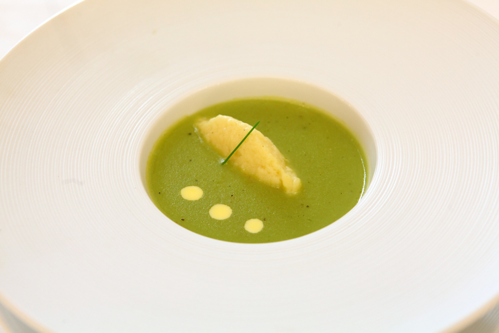 Od mrkve, luka, cvjetače, poriluka, graška i krumpira napraviti temeljac. Na maslacu zapržiti brašno, podliti temeljcem, pa dodati pasirani grašak. Žličnjak napravimo tako da skuhamo krumpir, izgnječimo ga, dodamo mu svježi bosiljak, pola jaja, brašno, sol i papar. Žličnjak dodamo u juhu pa legiramo vrhnjem i žumanjkom.